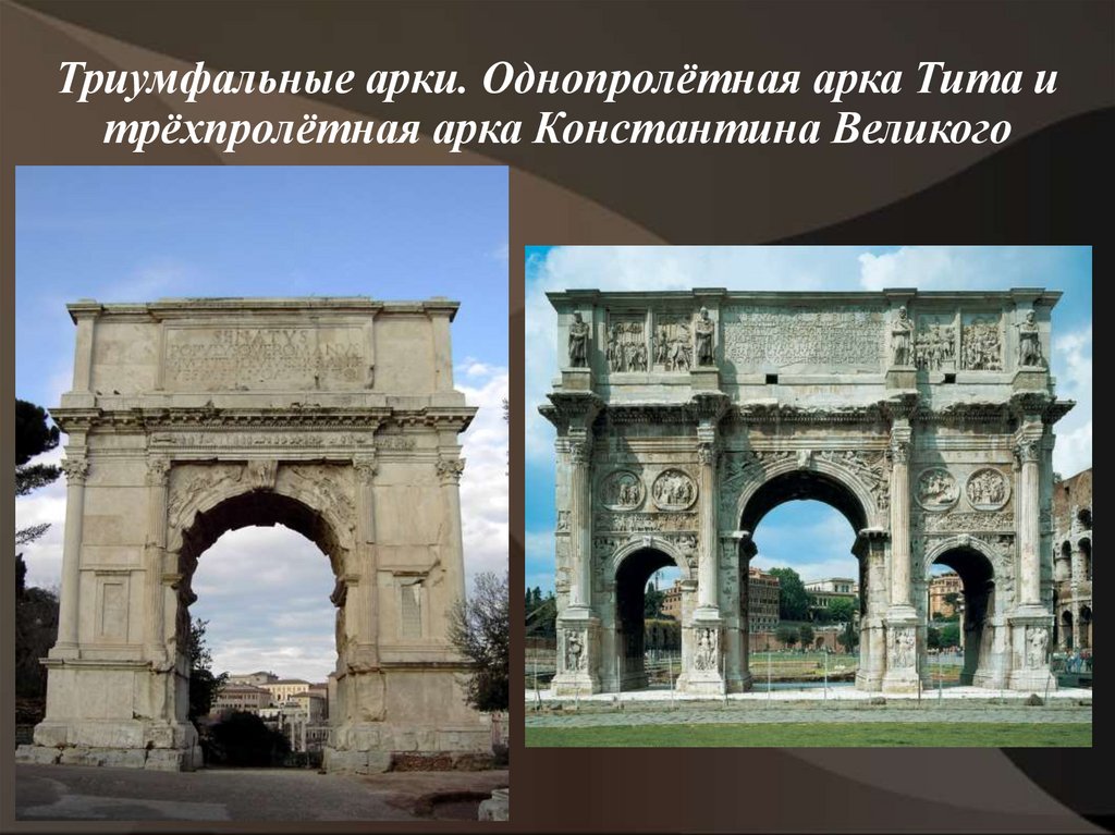 Триумфальные арки. Однопролётная арка Тита итрёхпролётная арка Константина Великого