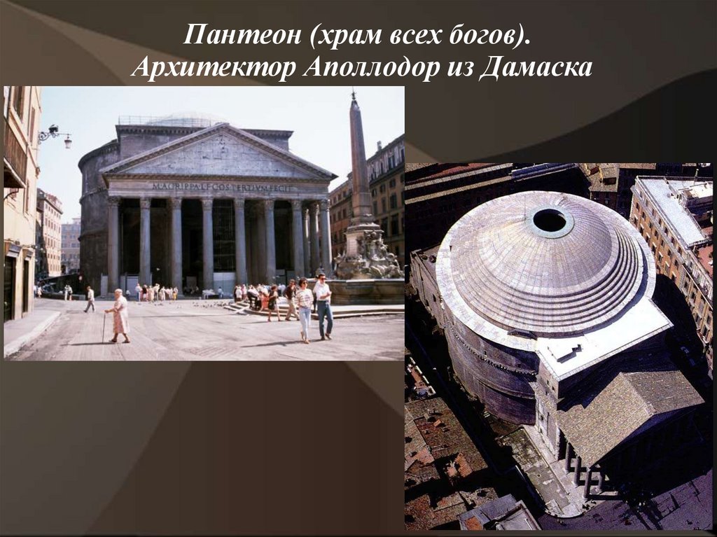 Пантеон (храм всех богов).Архитектор Аполлодор из Дамаска