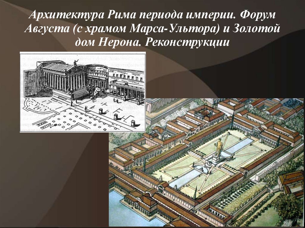 Архитектура Рима периода империи. ФорумАвгуста (с храмом Марса-Ультора) и Золотой