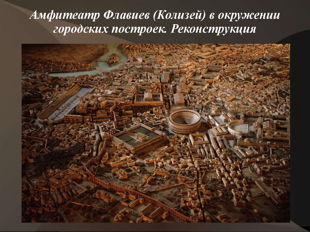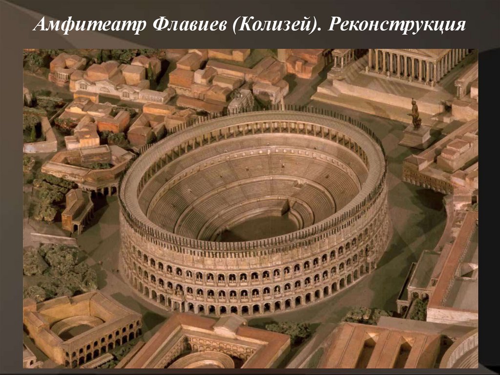 Амфитеатр Флавиев (Колизей) в окружениигородских построек. Реконструкция