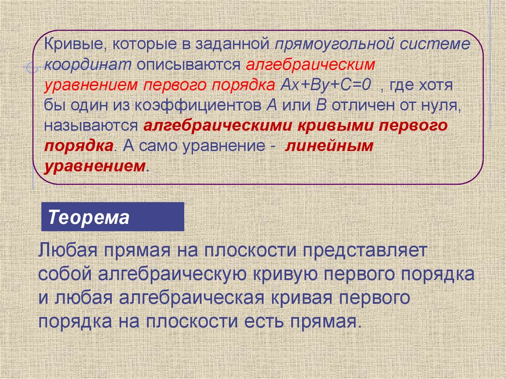 уравнением первого порядка Ах+Ву+С=0 , где хотя