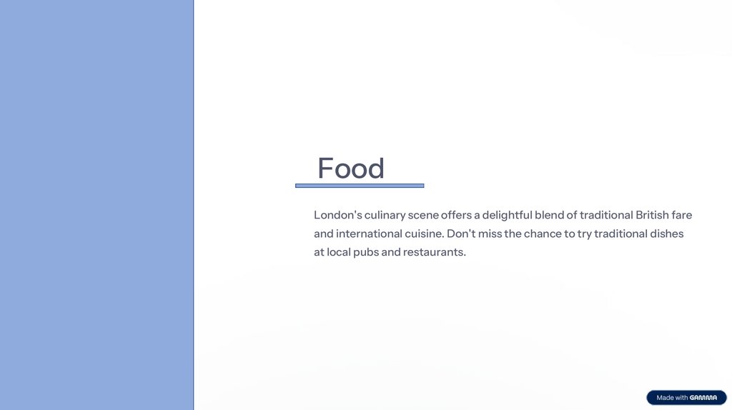 FoodLondon's culinary scene offers a delightful blend of traditional British fare