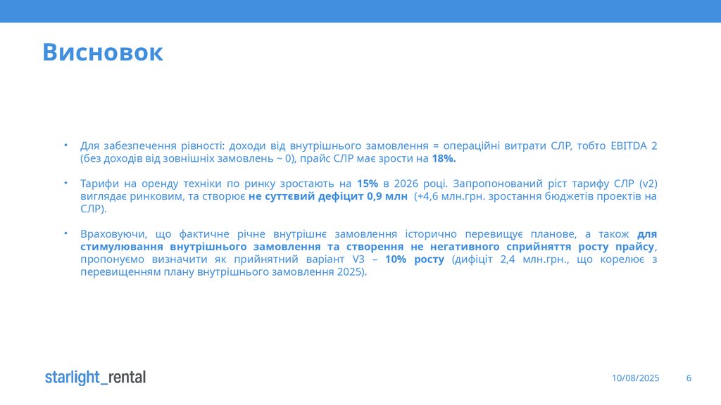 • Тарифи на оренду техніки по ринку зростають на 15% в 2026 році. Запропонований ріст тарифу СЛР (v2)