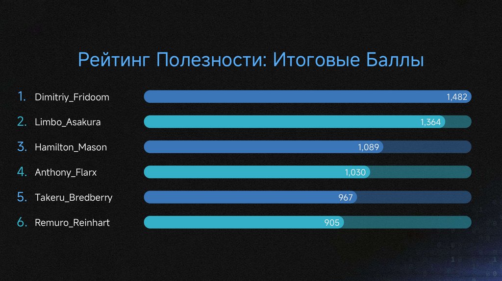 Рейтинг Полезности: Итоговые Баллы1. Dimitriy_Fridoom