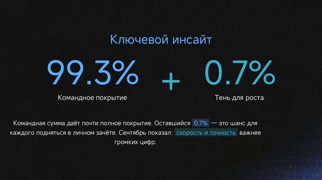 каждого подняться в личном зачёте. Сентябрь показал: скорость и точность важнее