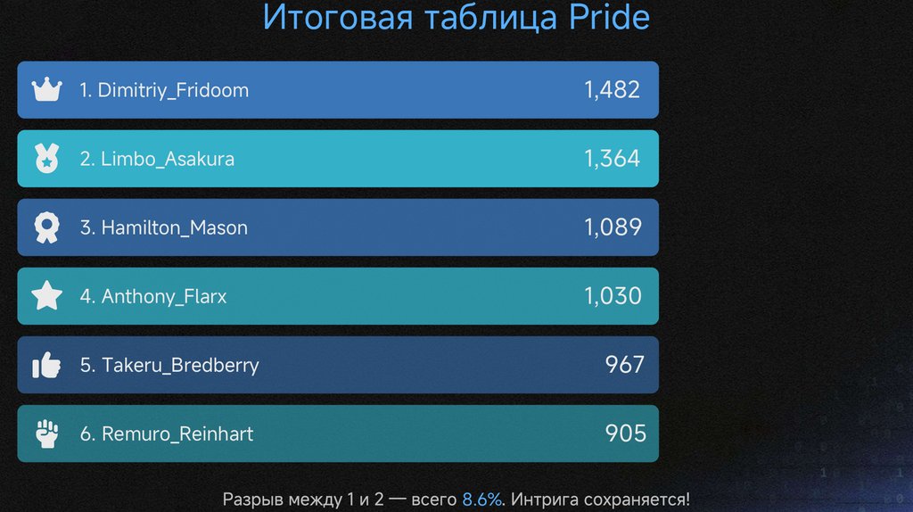 Итоговая таблица Pride1. Dimitriy_Fridoom