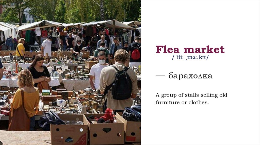Flea market/ˈfliː ˌmɑː.kɪt/