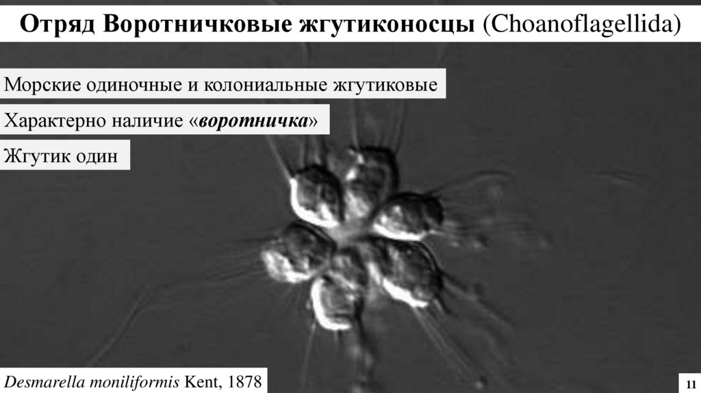 Отряд Воротничковые жгутиконосцы (Choanoflagellida)Морские одиночные и колониальные жгутиковые