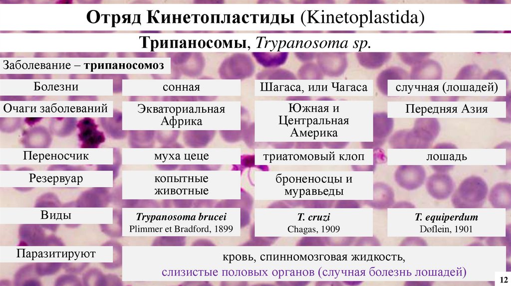 Отряд Кинетопластиды (Kinetoplastida)Трипаносомы, Trypanosoma sp.