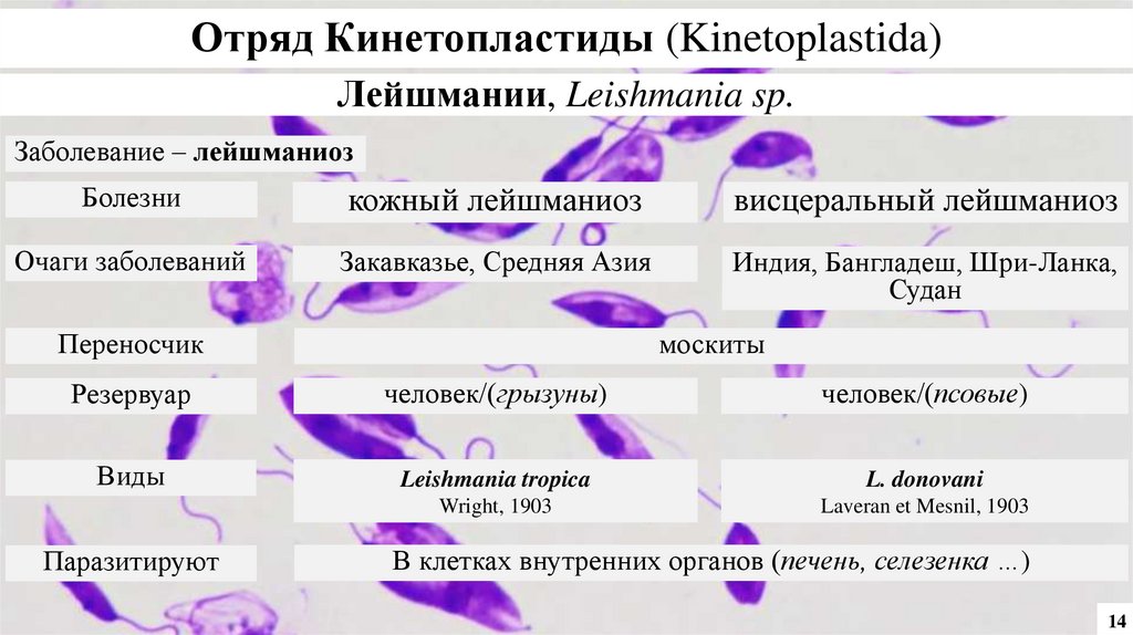 Отряд Кинетопластиды (Kinetoplastida)Лейшмании, Leishmania sp.