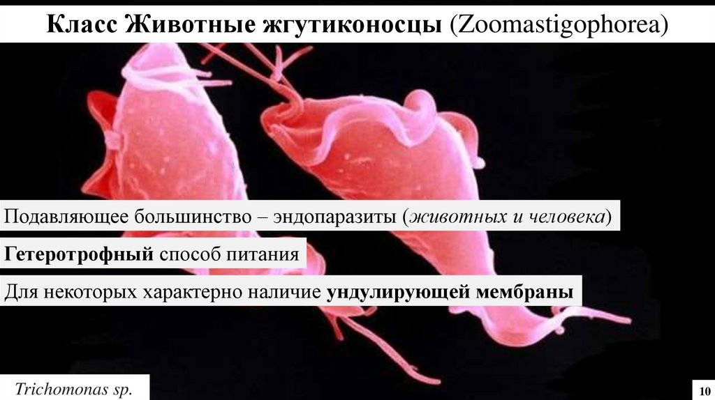Класс Животные жгутиконосцы (Zoomastigophorea)Подавляющее большинство – эндопаразиты (животных и человека)