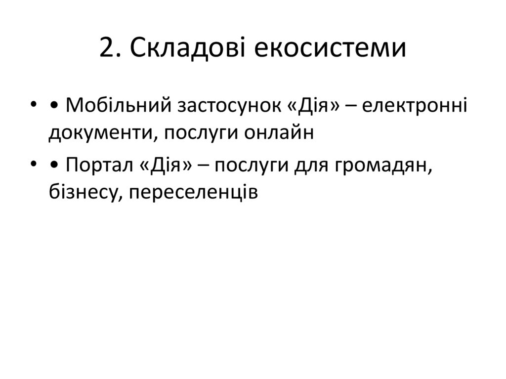 2. Складові екосистеми• • Мобільний застосунок «Дія» – електронні