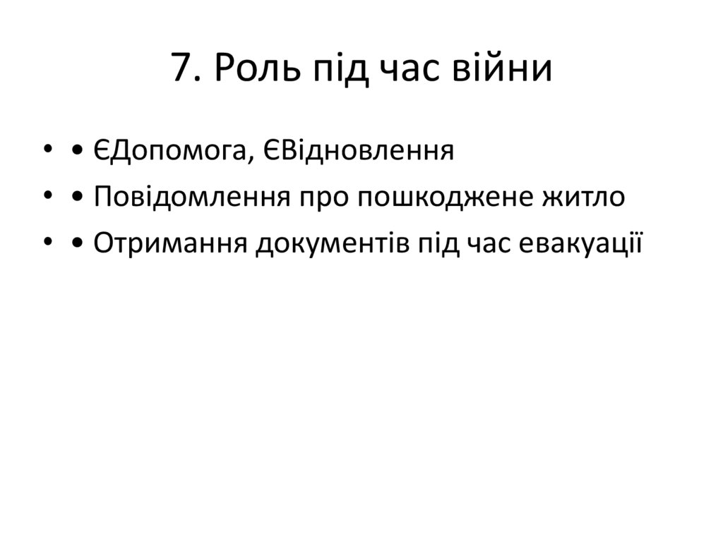 7. Роль під час війни• • ЄДопомога, ЄВідновлення
