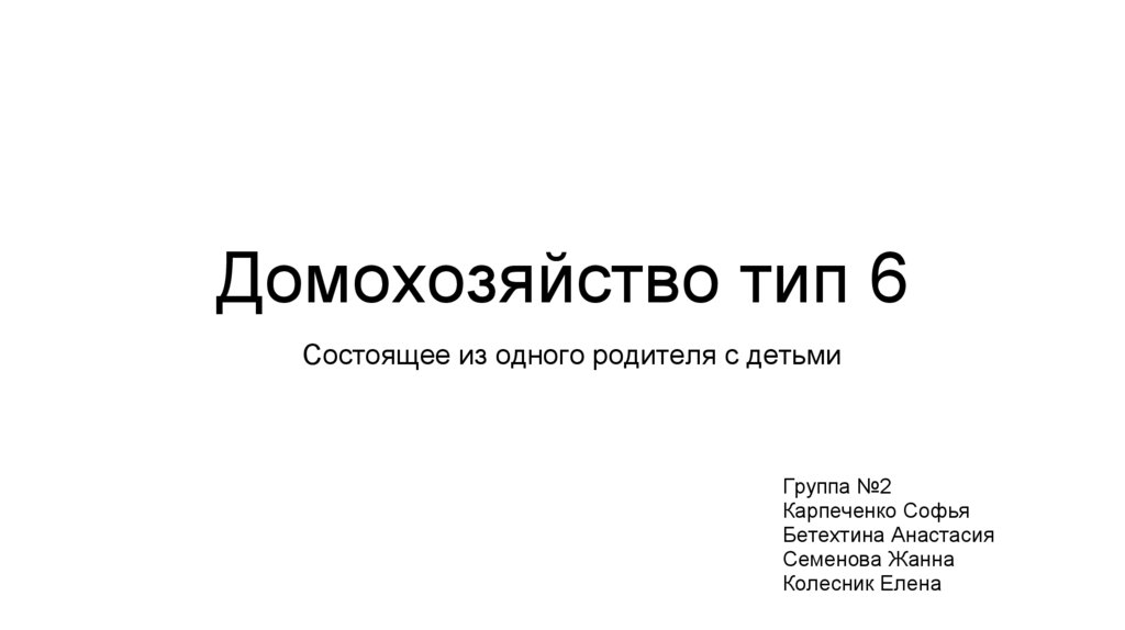 Домохозяйство тип 6Состоящее из одного родителя с детьми
