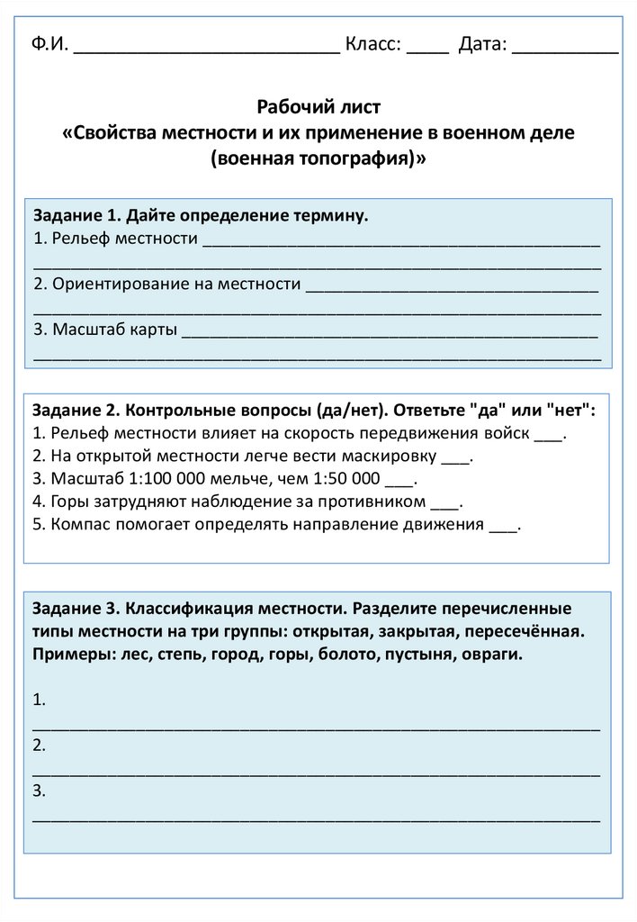 Ф.И. _________________________ Класс: ____ Дата: __________Рабочий лист
