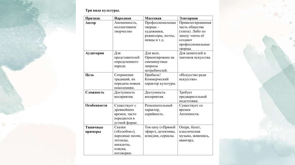 1. Составьте таблицу «Позитивные и негативные стороны массовойкультуры».