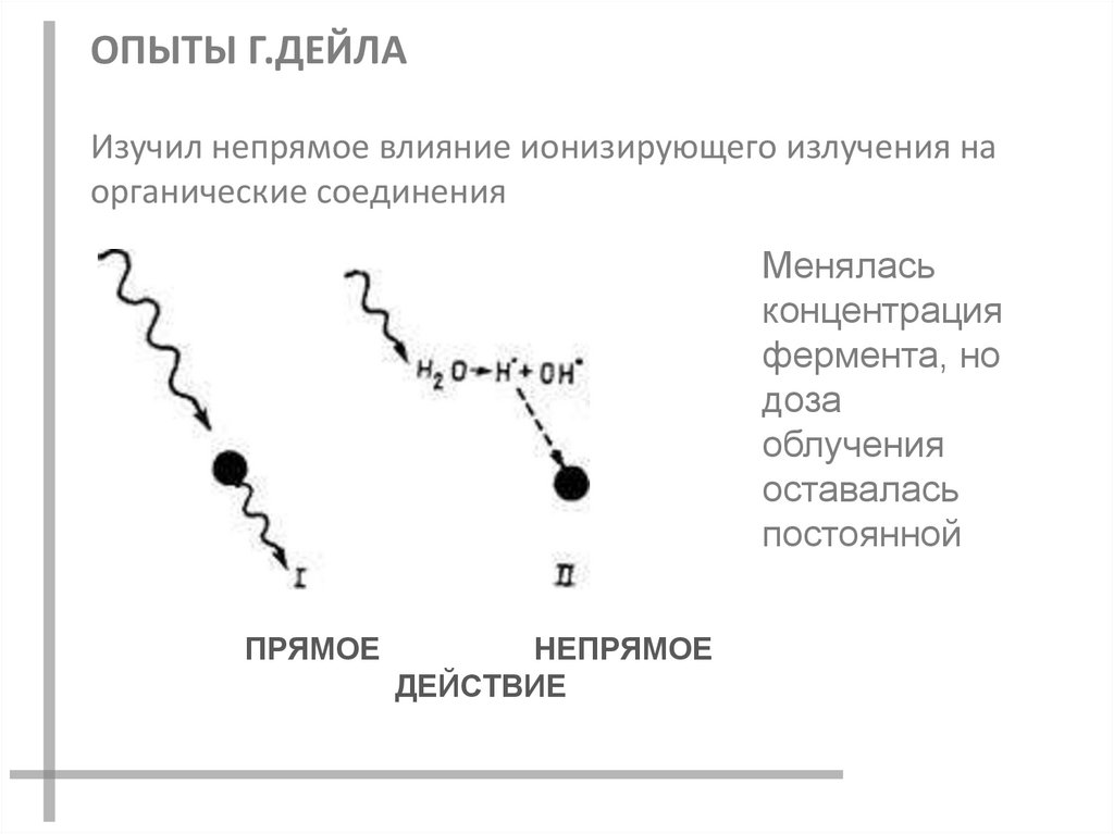 ОПЫТЫ Г.ДЕЙЛАИзучил непрямое влияние ионизирующего излучения на