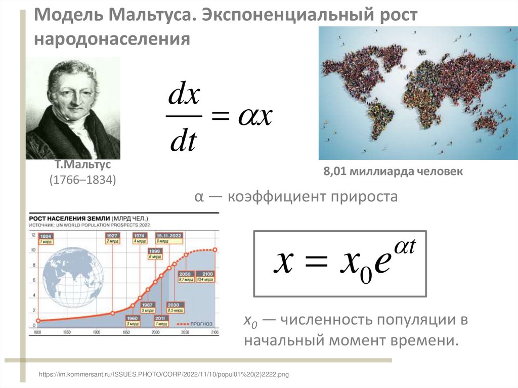 Модель Мальтуса. Экспоненциальный ростнародонаселения