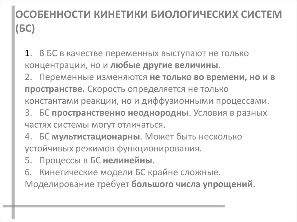 ОСОБЕННОСТИ КИНЕТИКИ БИОЛОГИЧЕСКИХ СИСТЕМ(БС)