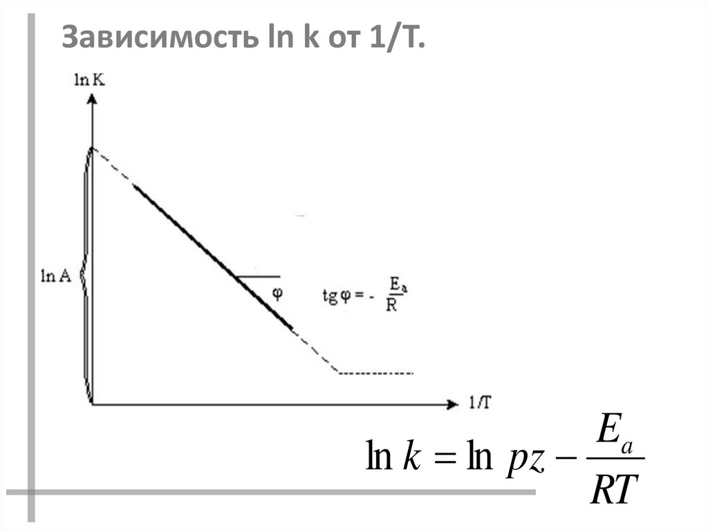 Зависимость ln k от 1/T.Ea