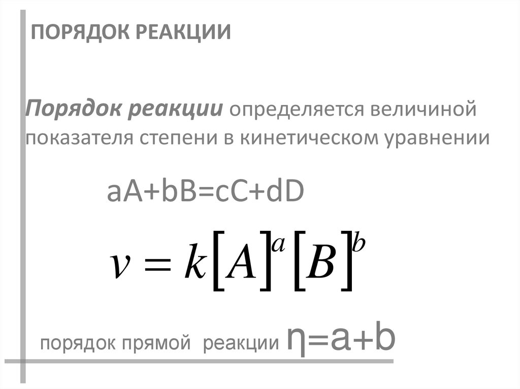 ПОРЯДОК РЕАКЦИИПорядок реакции определяется величиной