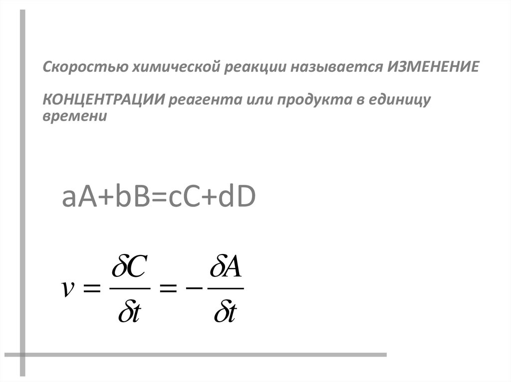 Скоростью химической реакции называется ИЗМЕНЕНИЕКОНЦЕНТРАЦИИ реагента или продукта в единицу