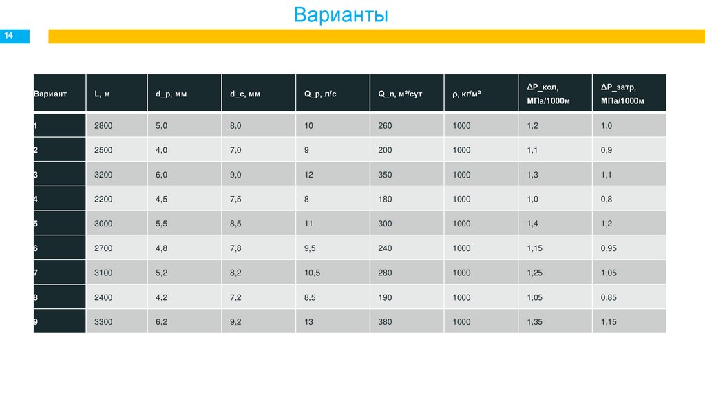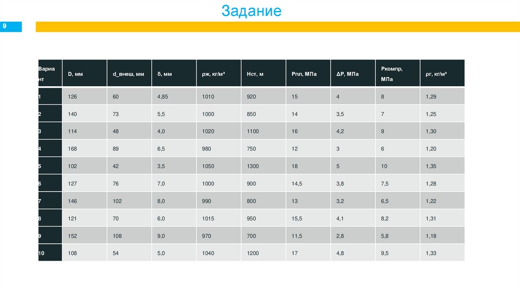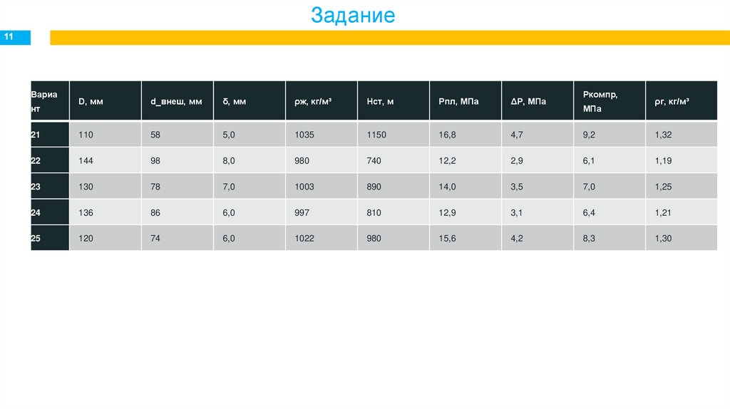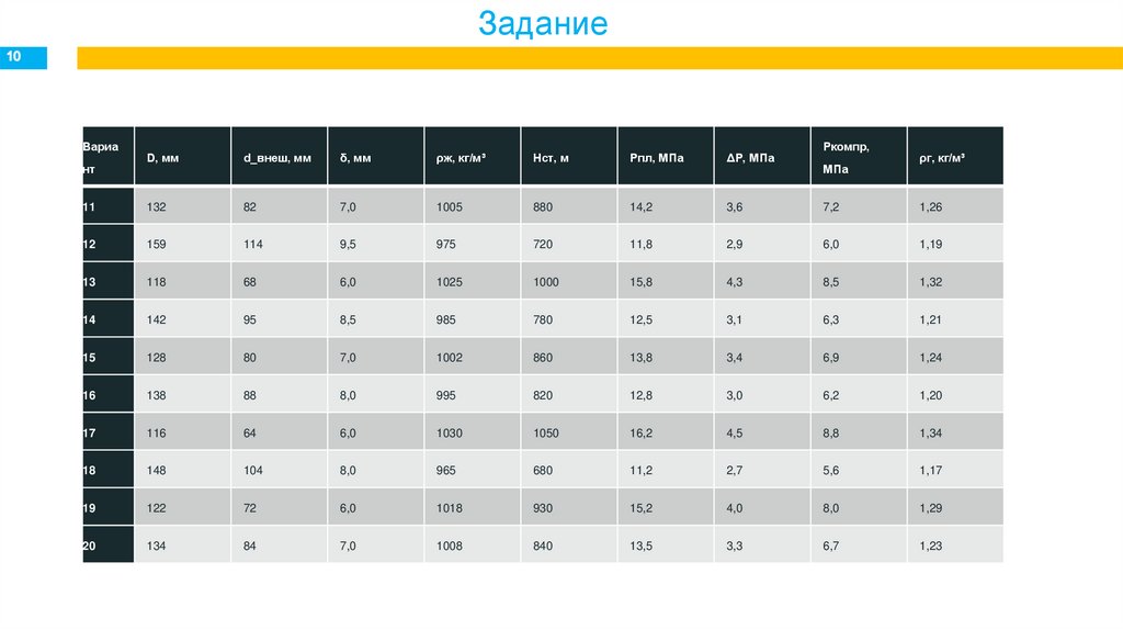 внутренний диаметр эксплуатационной колонны D; внешний диаметр колонны НКТ d; плотность