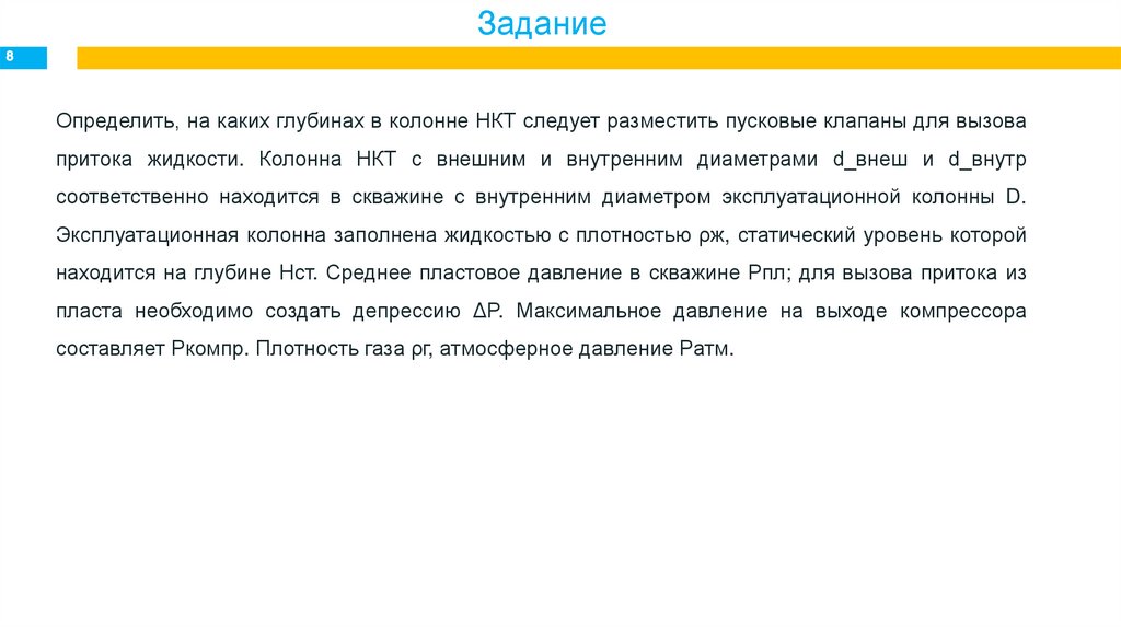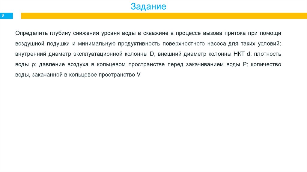 ЗаданиеОпределить глубину снижения уровня воды в скважине в процессе вызова притока при помощи