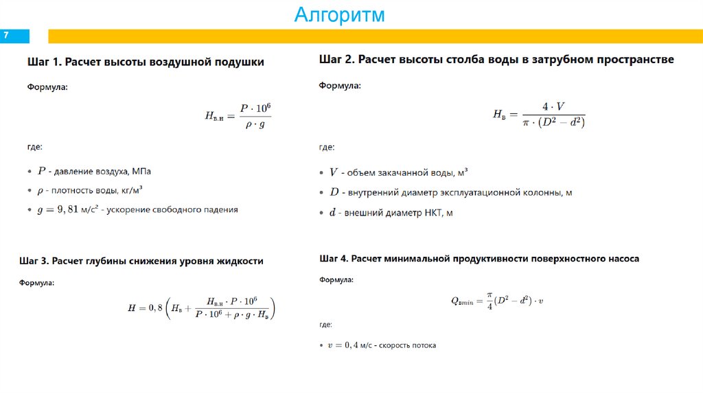 воздушной подушки и минимальную продуктивность поверхностного насоса для таких условий: