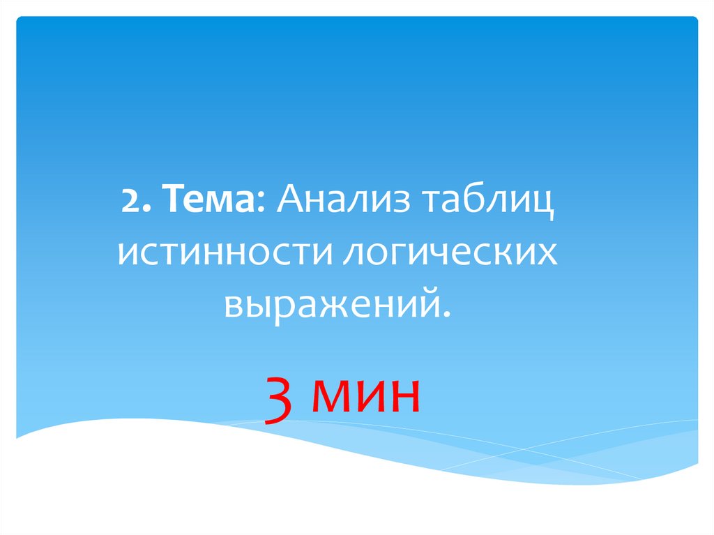1. 2. Тема: Анализ таблиц истинности логических выражений.