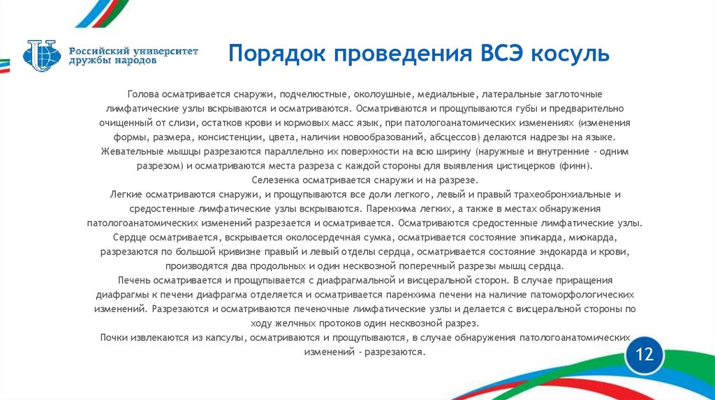 Порядок проведения ВСЭ косульГолова осматривается снаружи, подчелюстные, околоушные, медиальные, латеральные заглоточные