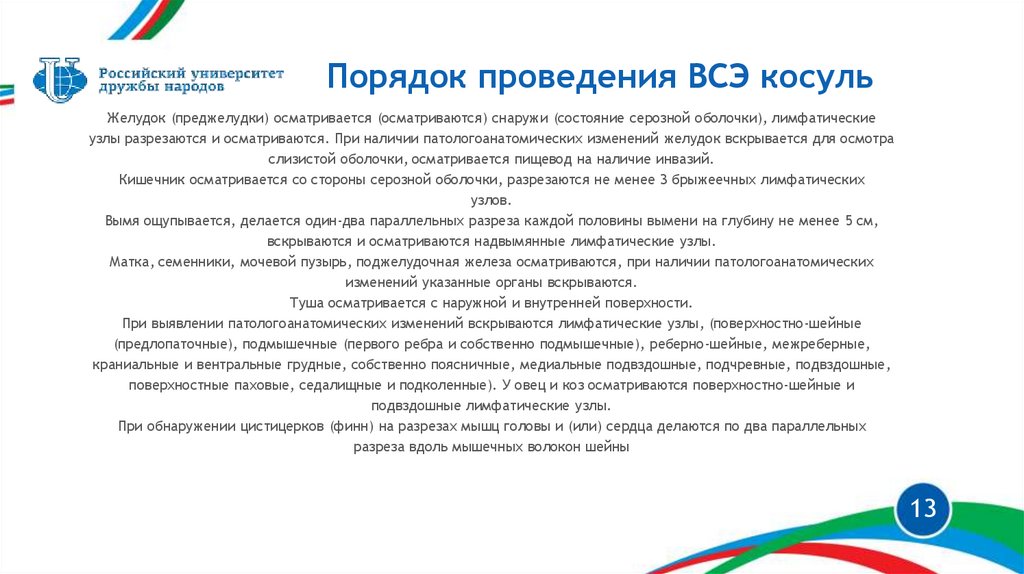Порядок проведения ВСЭ косульЖелудок (преджелудки) осматривается (осматриваются) снаружи (состояние серозной оболочки), лимфатические