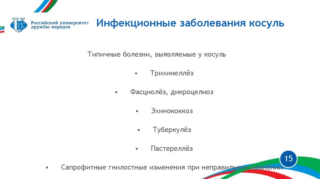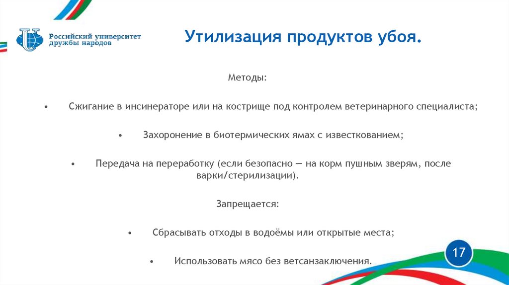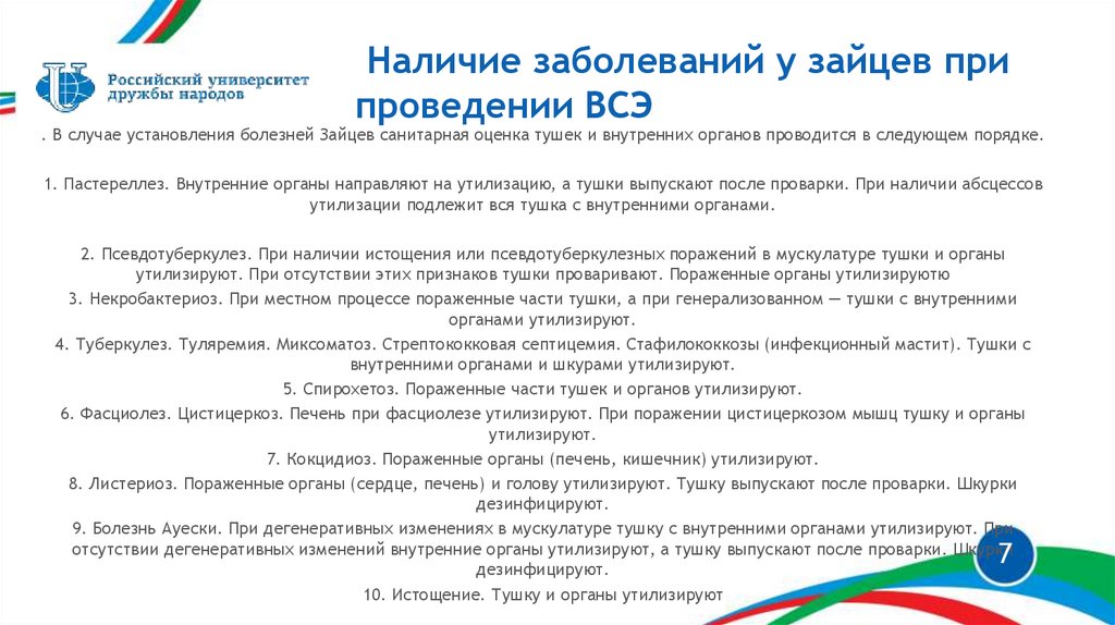 5. Спирохетоз. Пораженные части тушек и органов утилизируют.