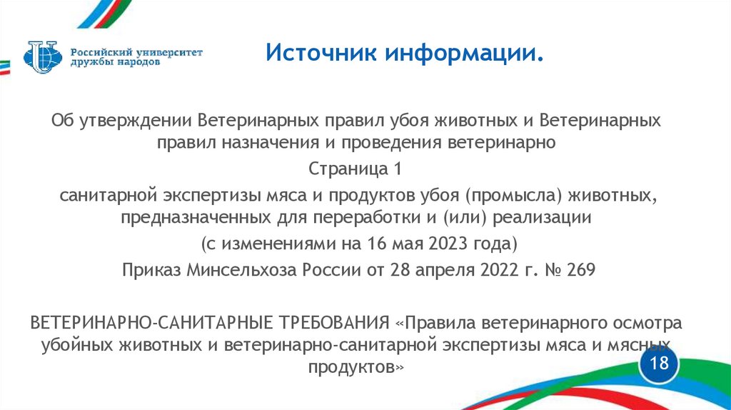 Источник информации.Об утверждении Ветеринарных правил убоя животных и Ветеринарных