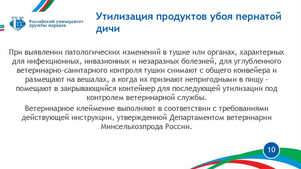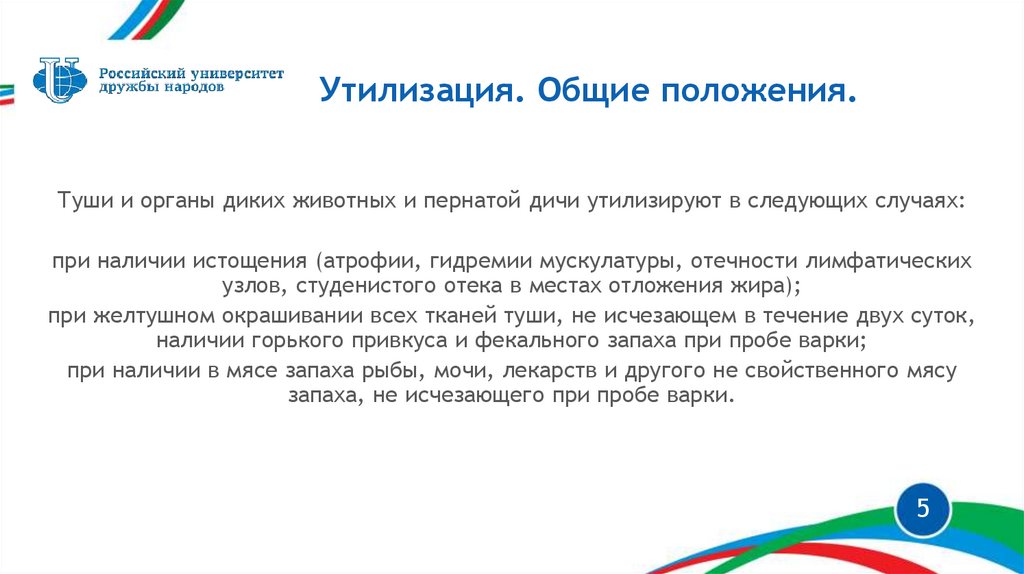 Утилизация. Общие положения.Туши и органы диких животных и пернатой дичи утилизируют в следующих случаях: