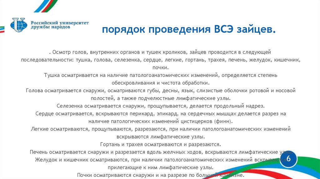 порядок проведения ВСЭ зайцев.. Осмотр голов, внутренних органов и тушек кроликов, зайцев проводится в следующей