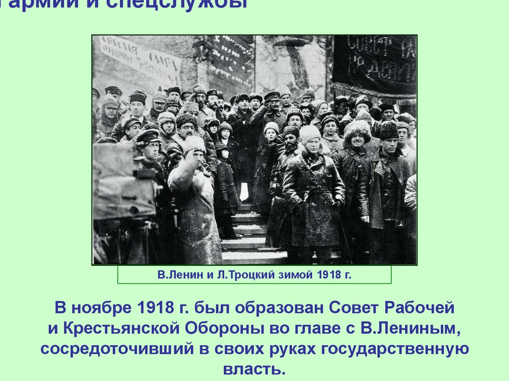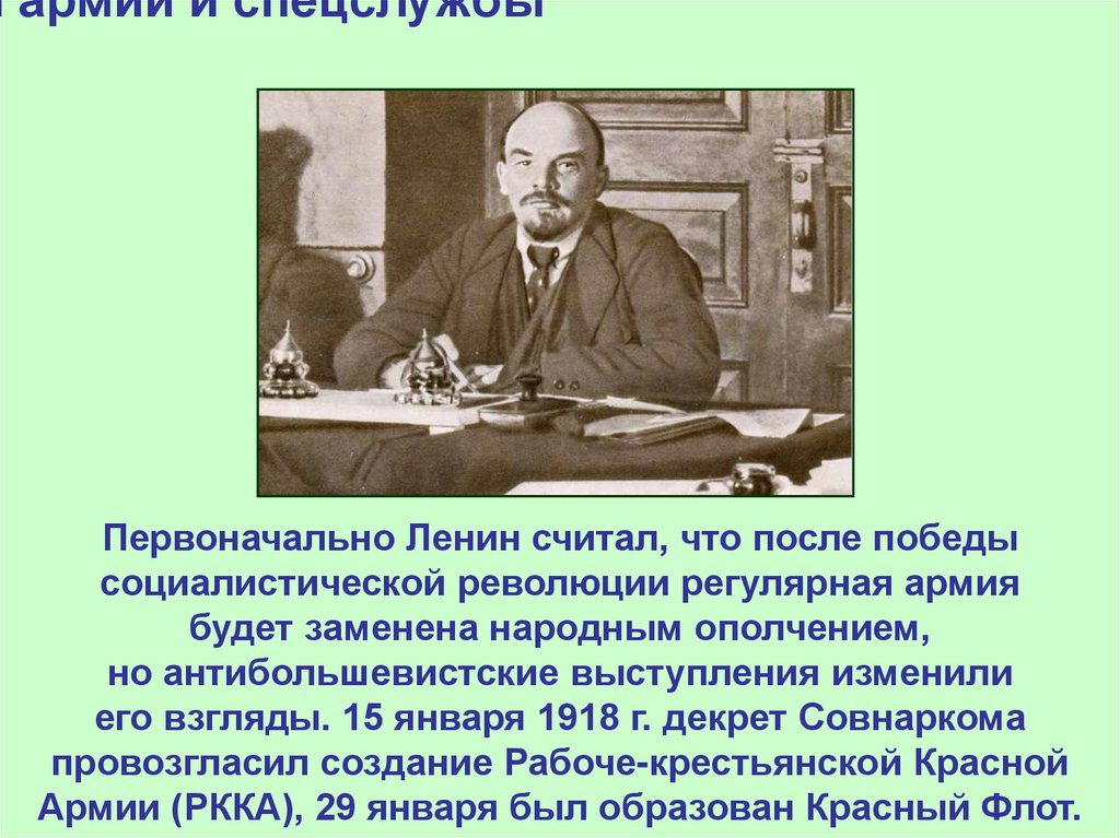 й армии и спецслужбыПервоначально Ленин считал, что после победы