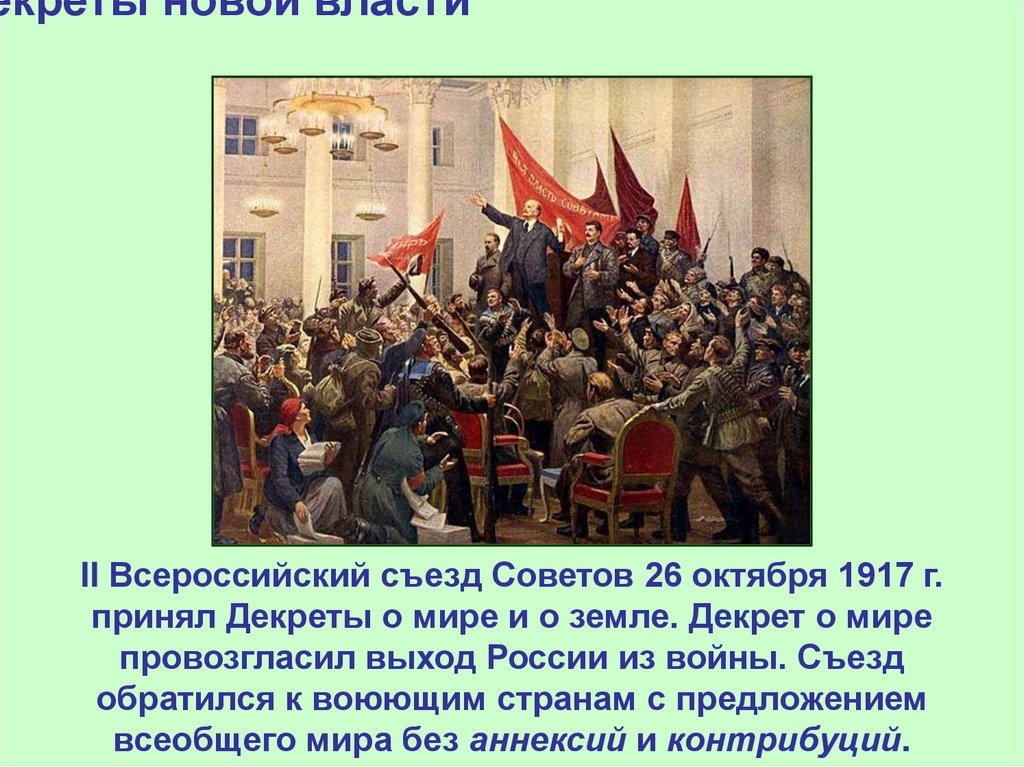 екреты новой властиII Всероссийский съезд Советов 26 октября 1917 г.