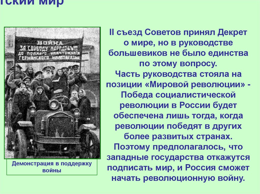 Ленин добился от ЦК и ВЦИК подписания мира. 3