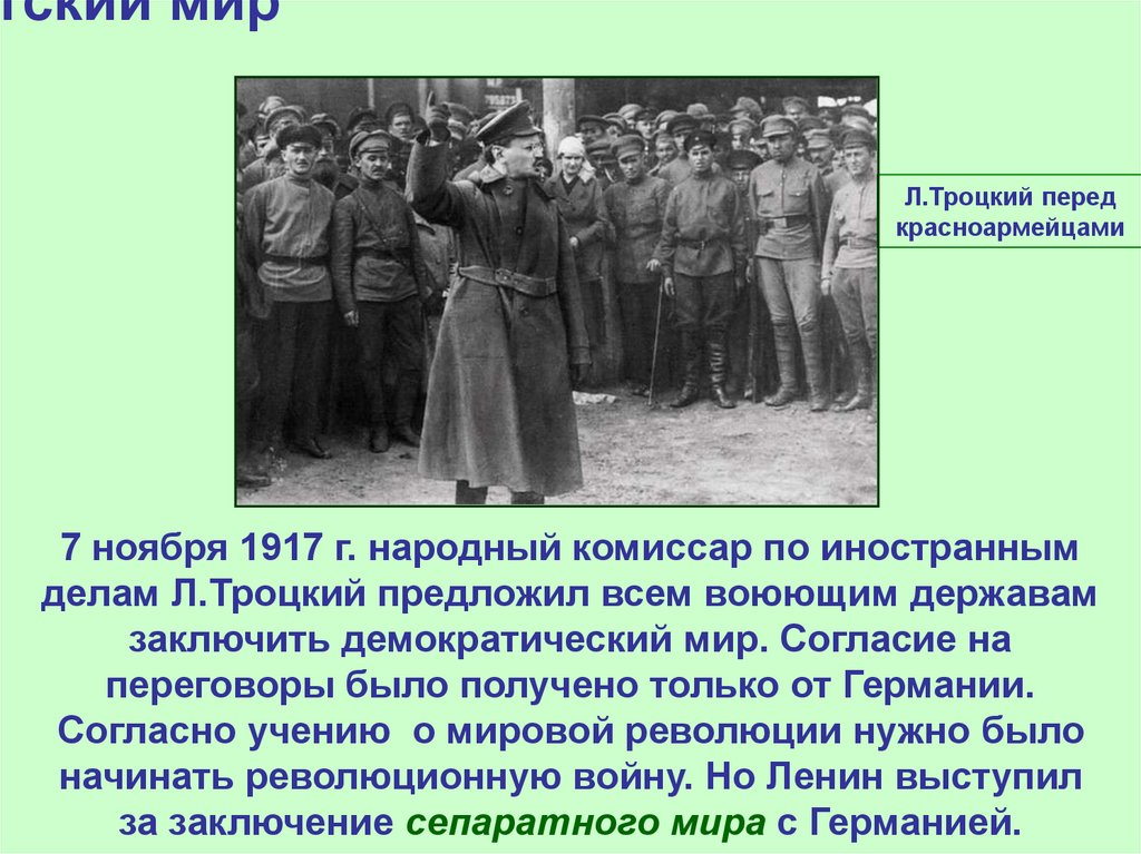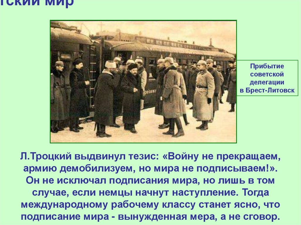 Л.Троцкий выдвинул тезис: «Войну не прекращаем,