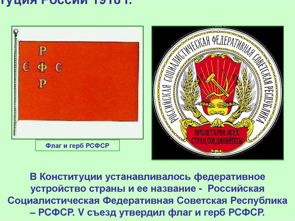– РСФСР. V съезд утвердил флаг и герб РСФСР.