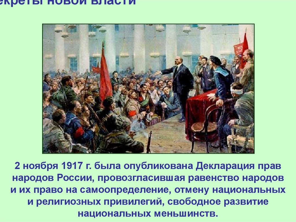 екреты новой власти2 ноября 1917 г. была опубликована Декларация прав