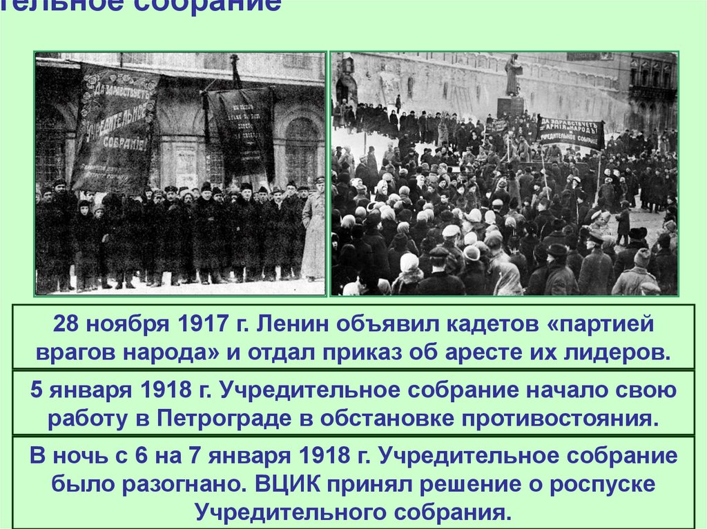 тельное собрание28 ноября 1917 г. Ленин объявил кадетов «партией