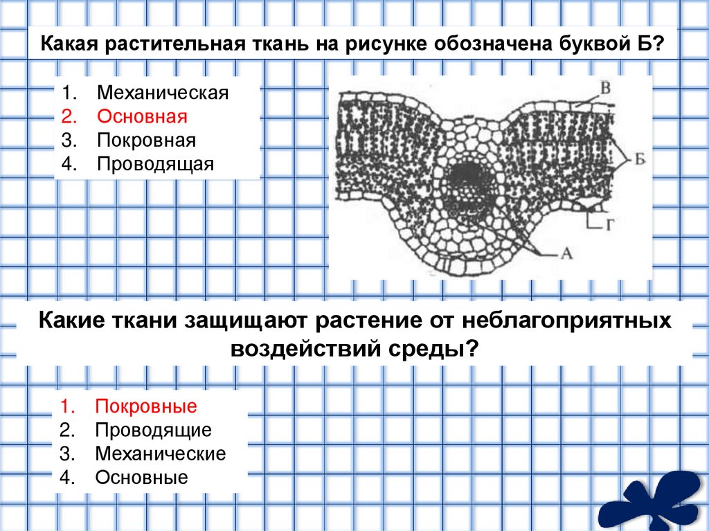 Какая растительная ткань на рисунке обозначена буквой Б?1.