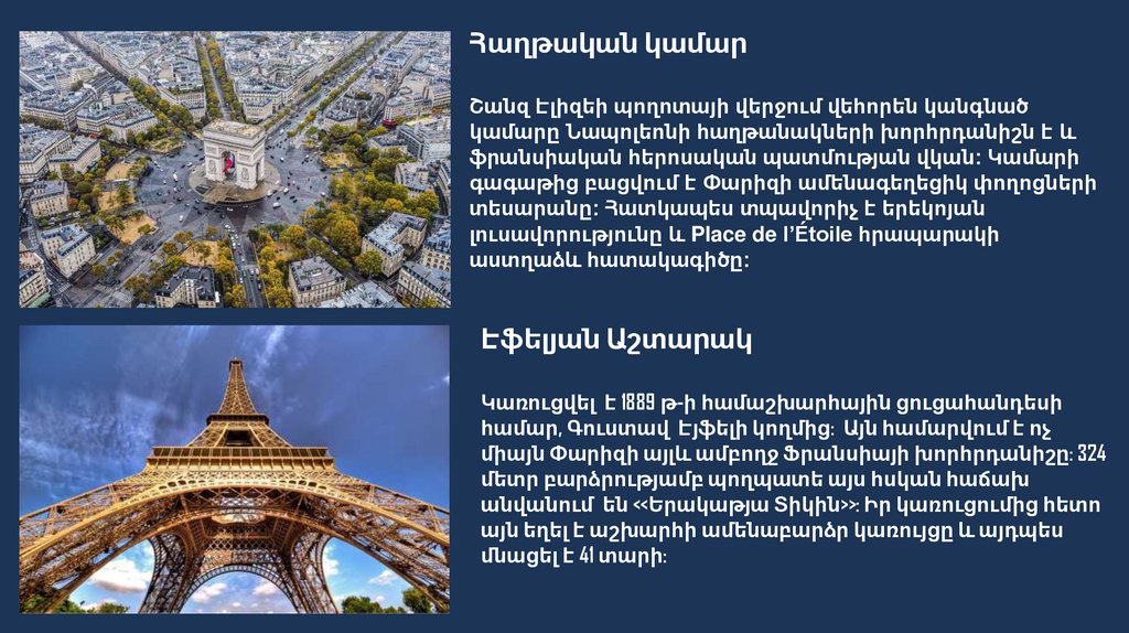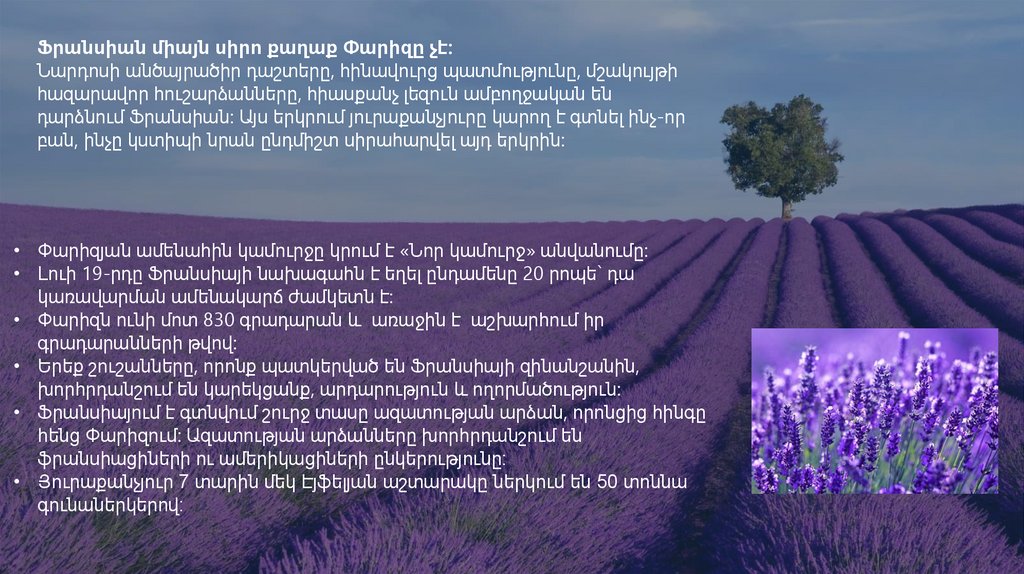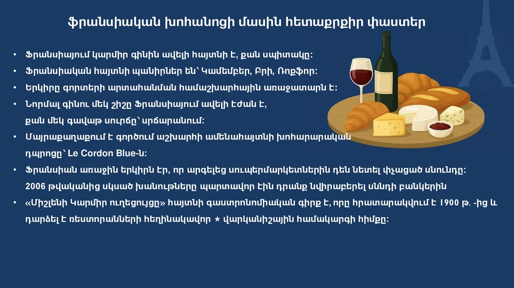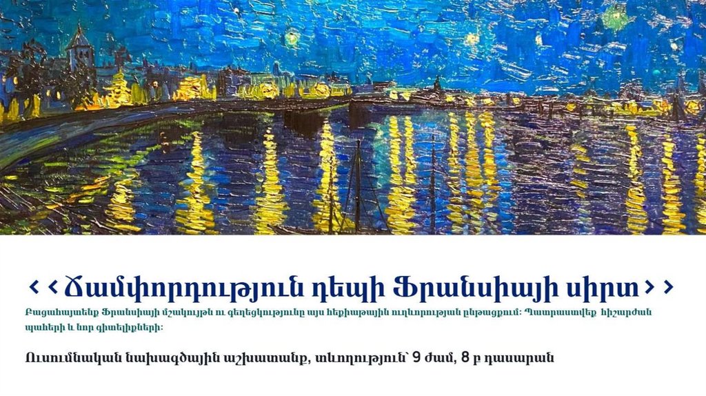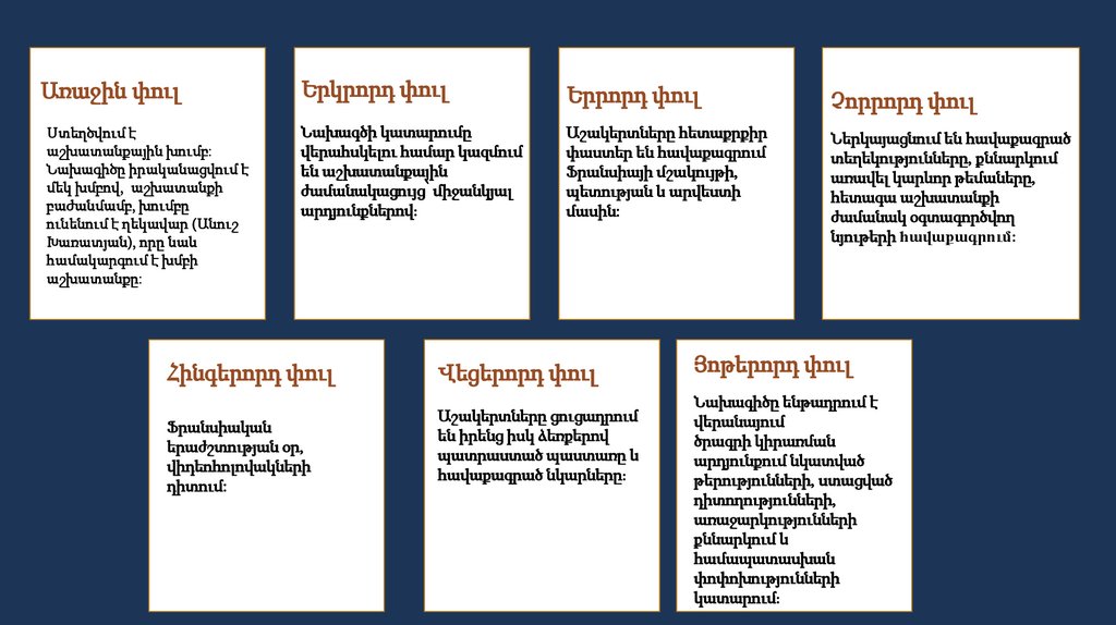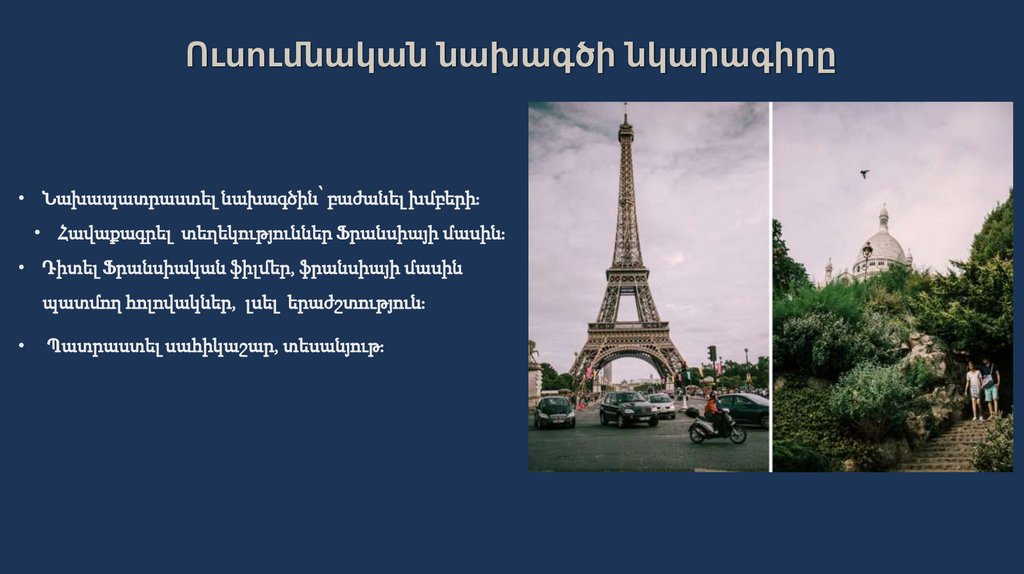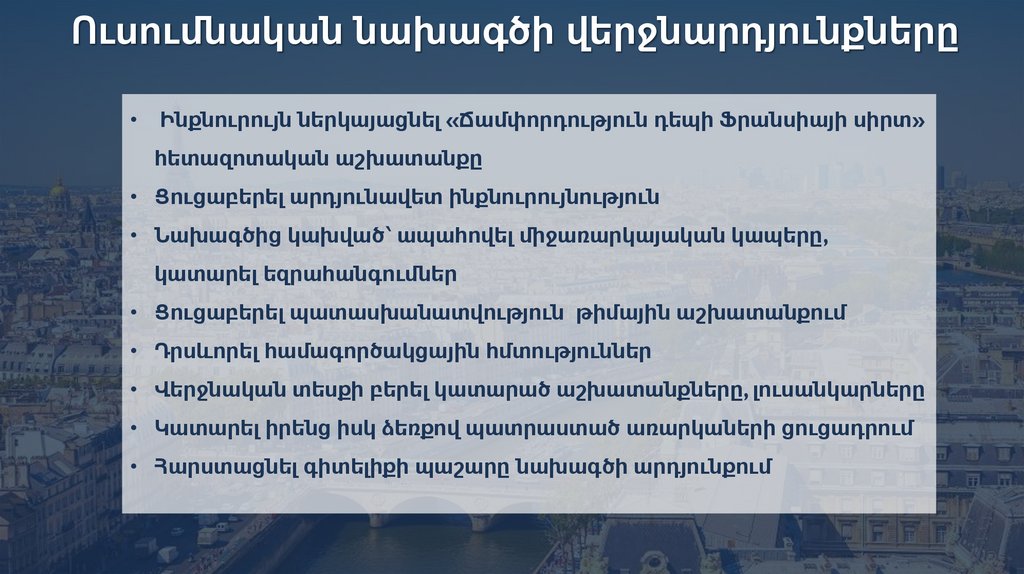Ուսումնական նախագծի վերջնարդյունքներըԻնքնուրույն ներկայացնել «Ճամփորդություն դեպի Ֆրանսիայի սիրտ»