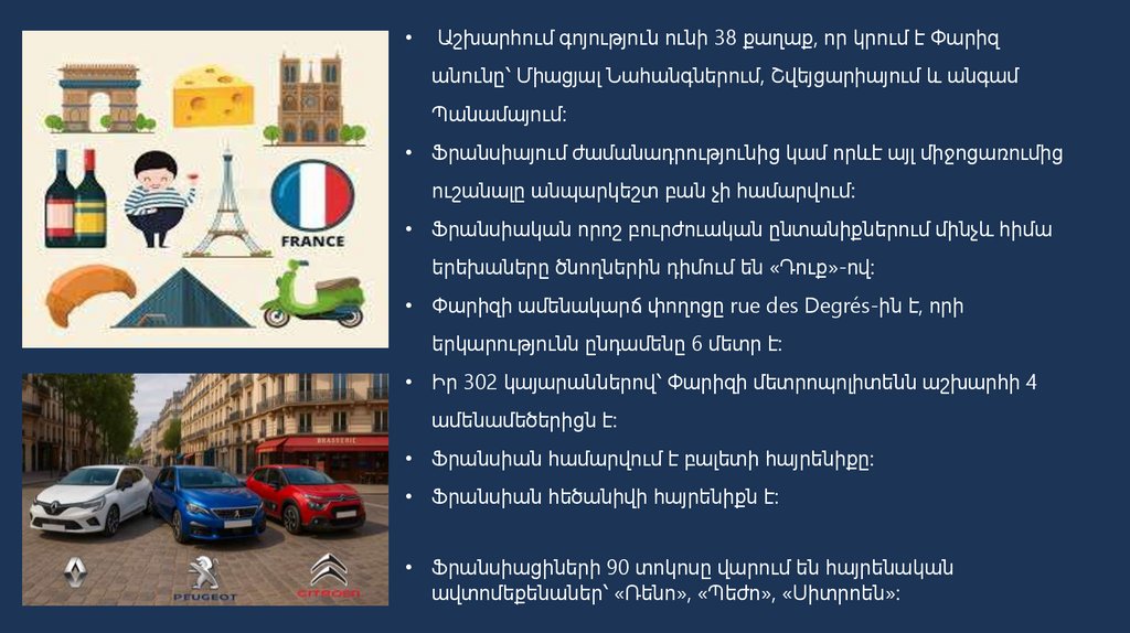 • Ֆրանսիացիների 90 տոկոսը վարում են հայրենական