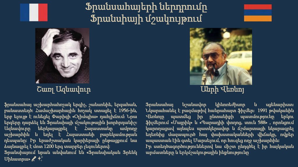 Ֆրանսահայերի ներդրումըՖրանսիայի մշակույթում
