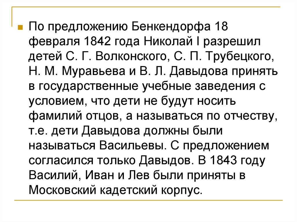 По предложению Бенкендорфа 18февраля 1842 года Николай I разрешил