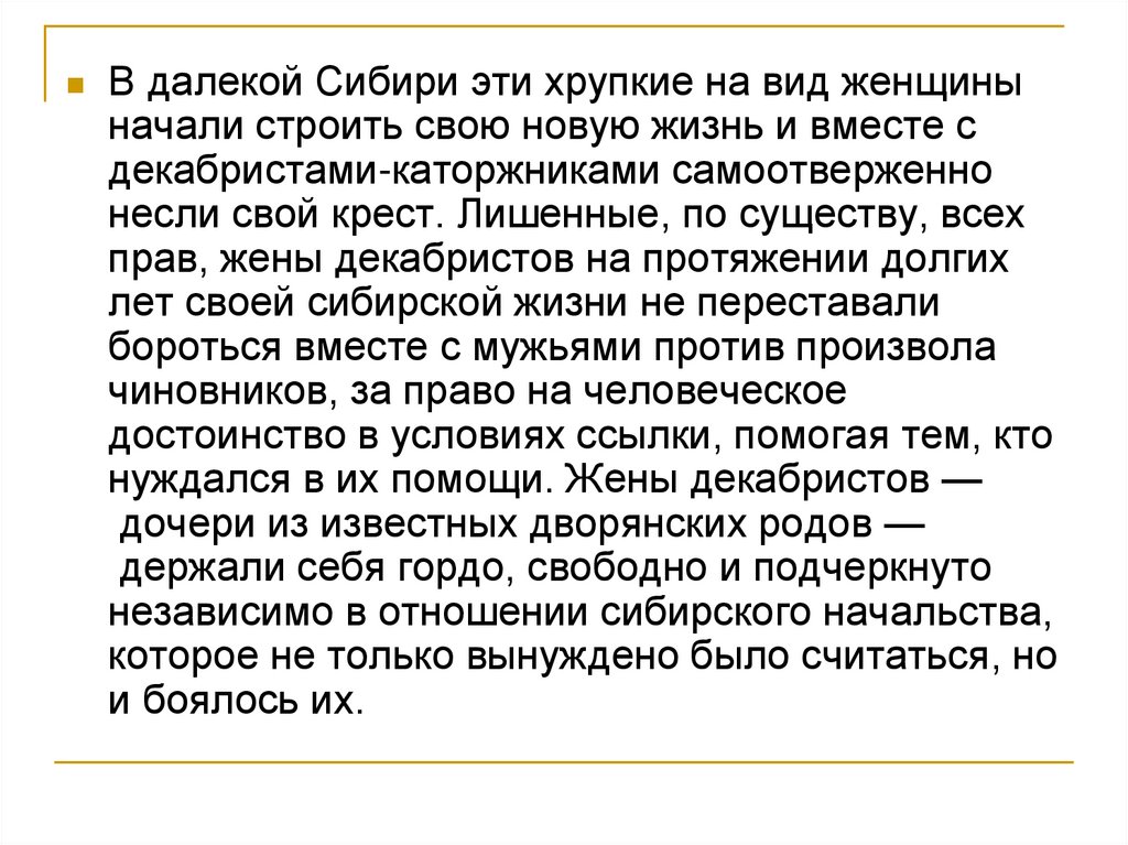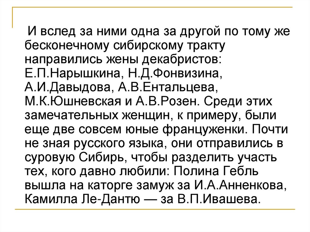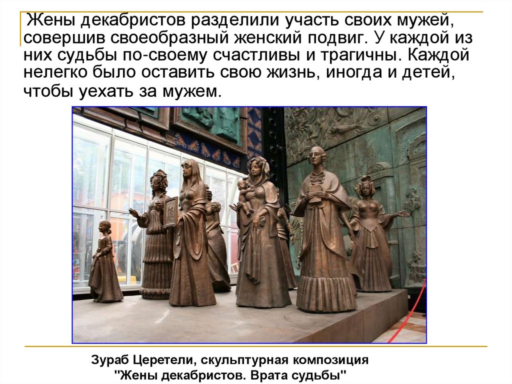 Жены декабристов разделили участь своих мужей,совершив своеобразный женский подвиг. У каждой из