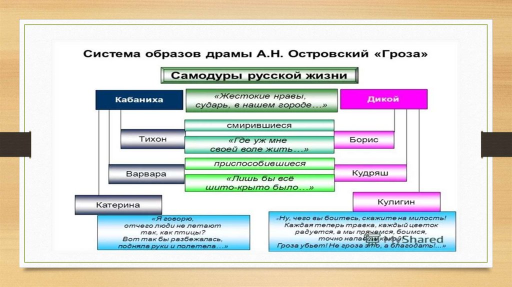 • Дочь Кабановой.• Научилась лгать, чтобы выжить в доме Кабанихи: «…У нас